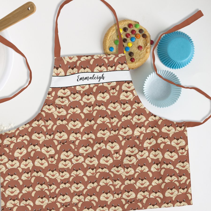 Cute Bear Face Pattern Monogrammed Apron