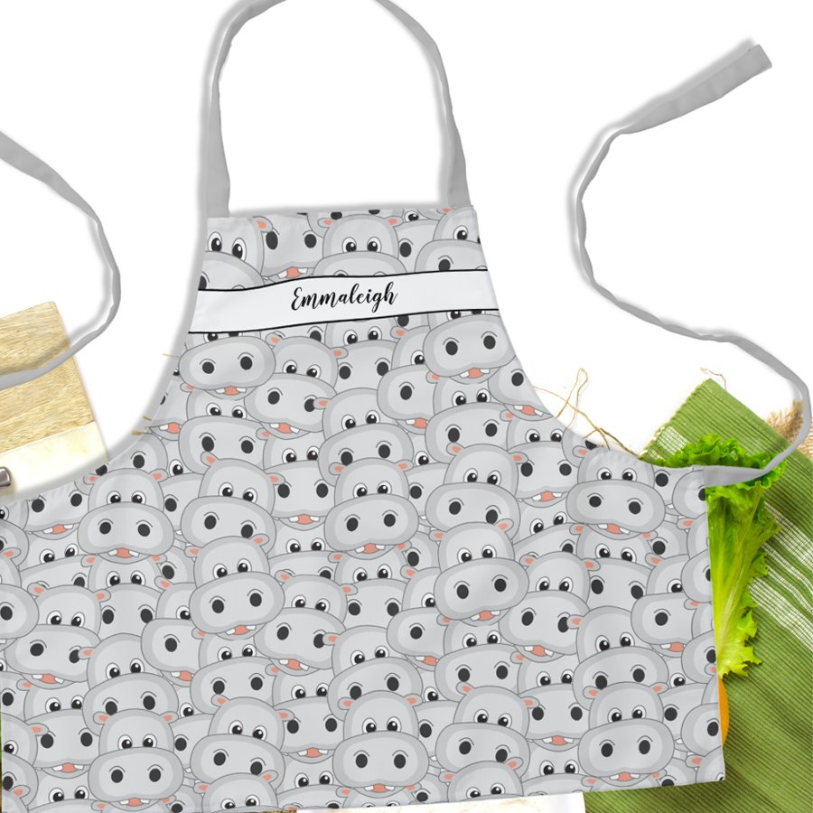Cute Hippopotamus Face Pattern Monogrammed Apron