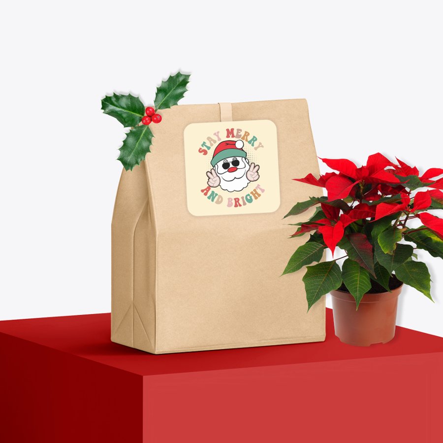 70's Retro Santa Claus Stay Merry and Bright Square Sticker