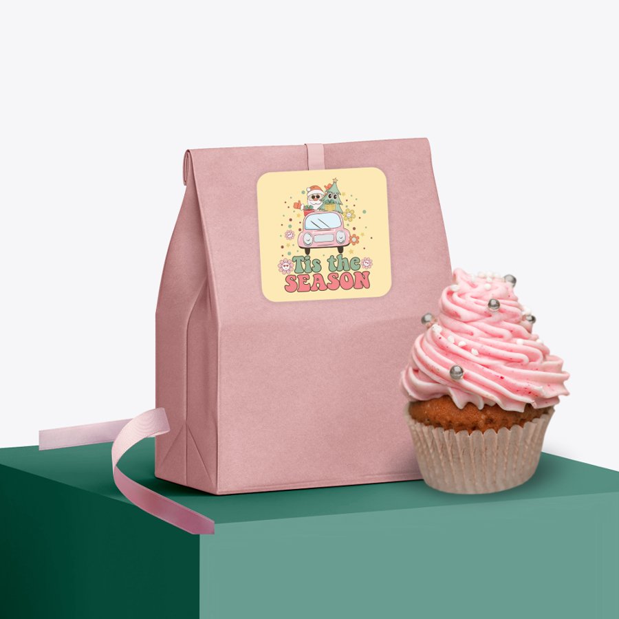 70's Retro Typography Cute Holiday Cup of Cheer Square Sticker