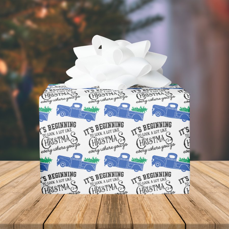 Beginning to Look Like Blue Truck Christmas Wrapping Paper