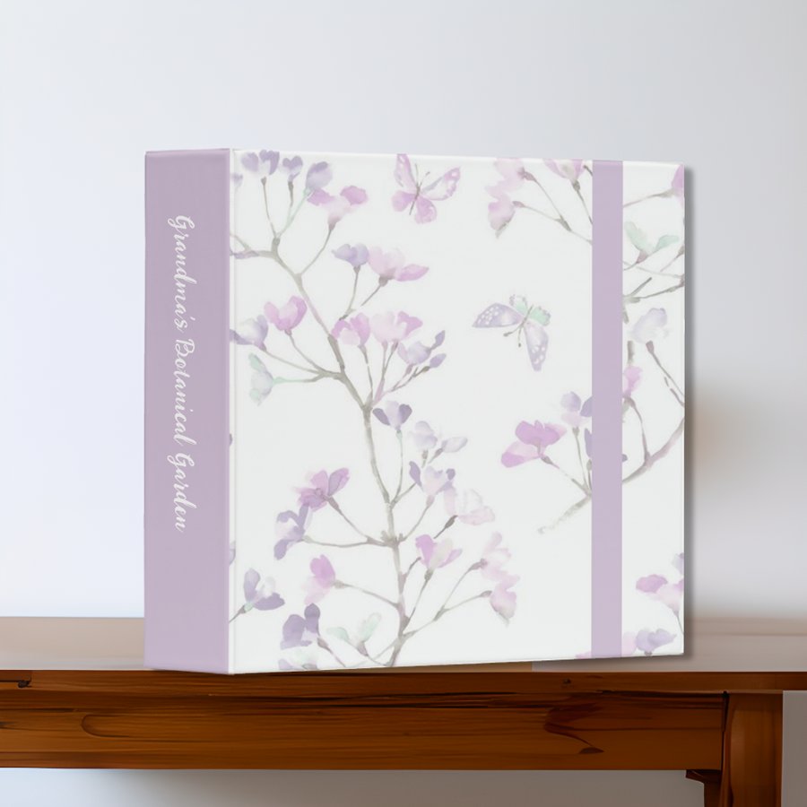 Boho Lavender Botanical Garden Floral Butterfly 3 Ring Binder