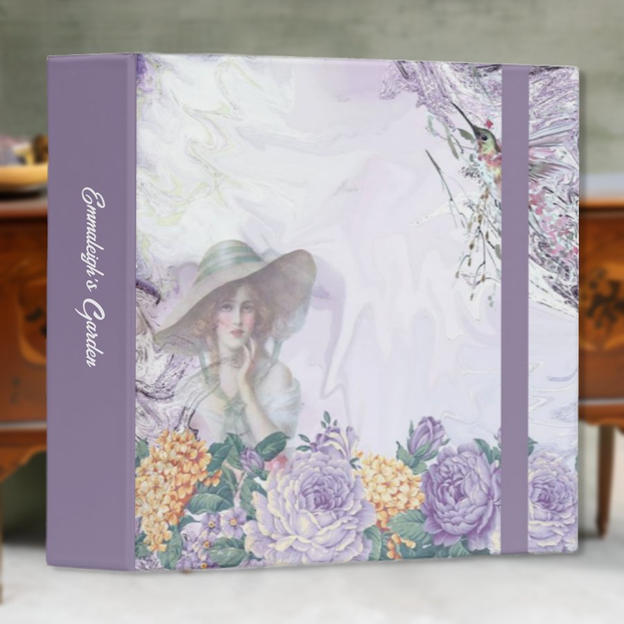 Victorian Woman Hummingbird Floral Garden 3 Ring Binder