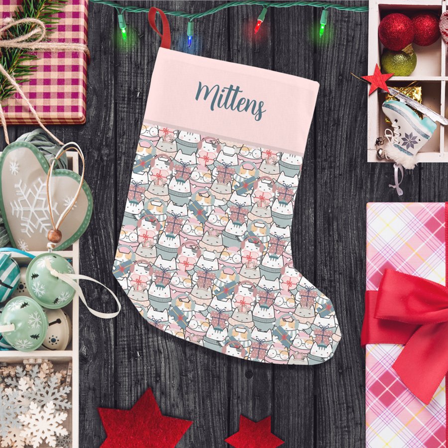Purr-fectly Personalized Monogrammed Cat Pattern Small Christmas Stocking