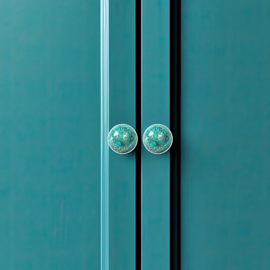 Decorative Teal Marble Gold Painted Magic Ceramic Knob
